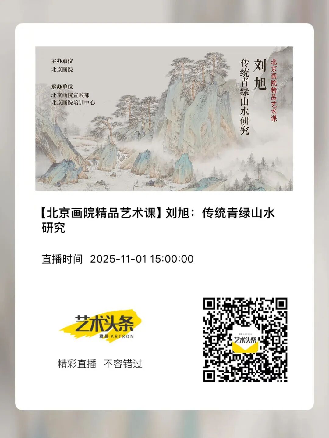 本期我们走进艺术家刘旭老师的课堂,听他讲解传统青绿山水的创作。刘老师将系统梳理青绿山水的学习路径,课程涵盖技法、理念及色彩运用等核心要素,并为大家答疑解惑。此外,课程还将重点讲解墨稿的重要性、色彩搭配的技巧以及材料选择的要点等。通过这堂课,大家不仅能够掌握青绿山水画的技法,更能领悟其背后的文化精神与艺术价值。