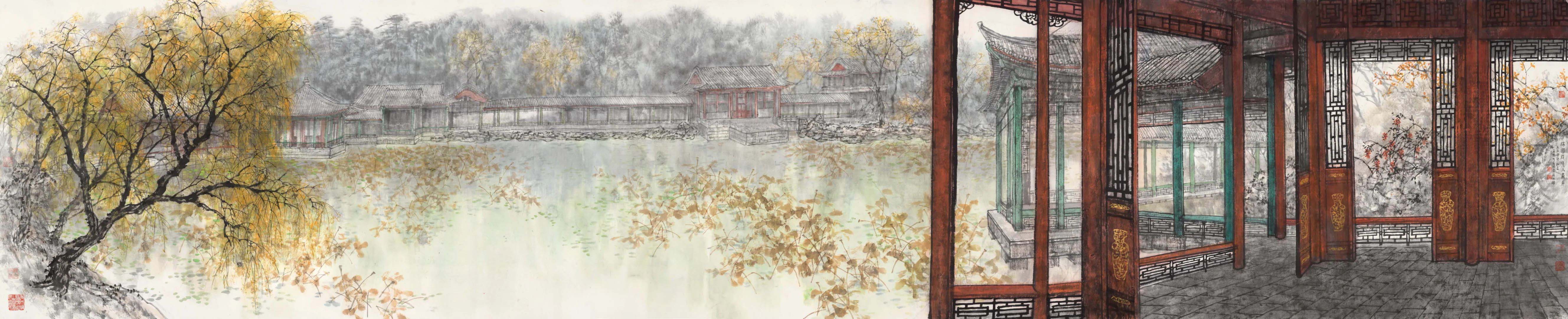 本次展览汇集当代中国画名家、北京画院原院长王明明先生近年来创作的中国古典园林题材作品近百幅,呈现了中国皇家园林富丽幽逸和文人园林清新典雅的气象。