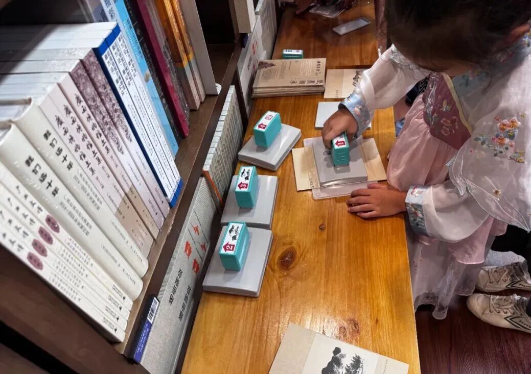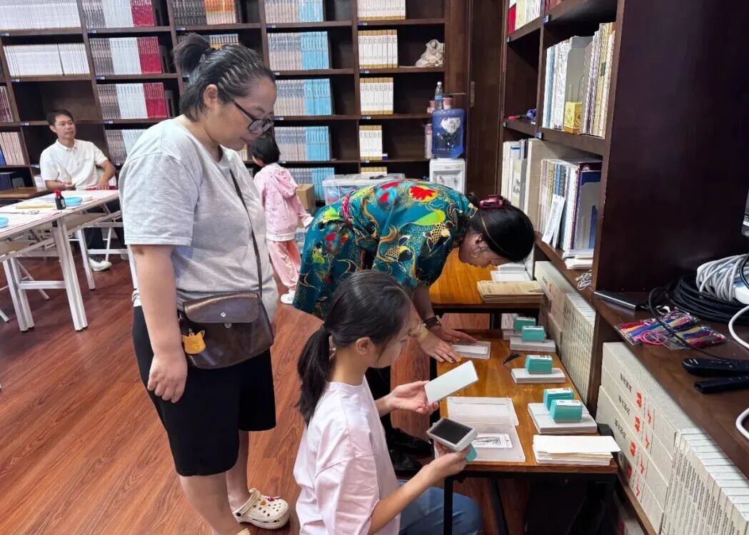 融合北京画院图书馆创作的“典耀集珍”——活动拓展叶,北京画院图书馆将活动的延展创意提升,模拟古籍书页的形式,让读者亲自完成纸面小游戏,增加互动环节,体味传统文化的趣味,递进式获取知识,展现艺术书籍的文化价值,实现活动的长效传播。利用北京画院图书馆古籍资源专门设计山水图案套色印章,将读书、赏画与动手实践紧密结合,受到参与者的一致好评。