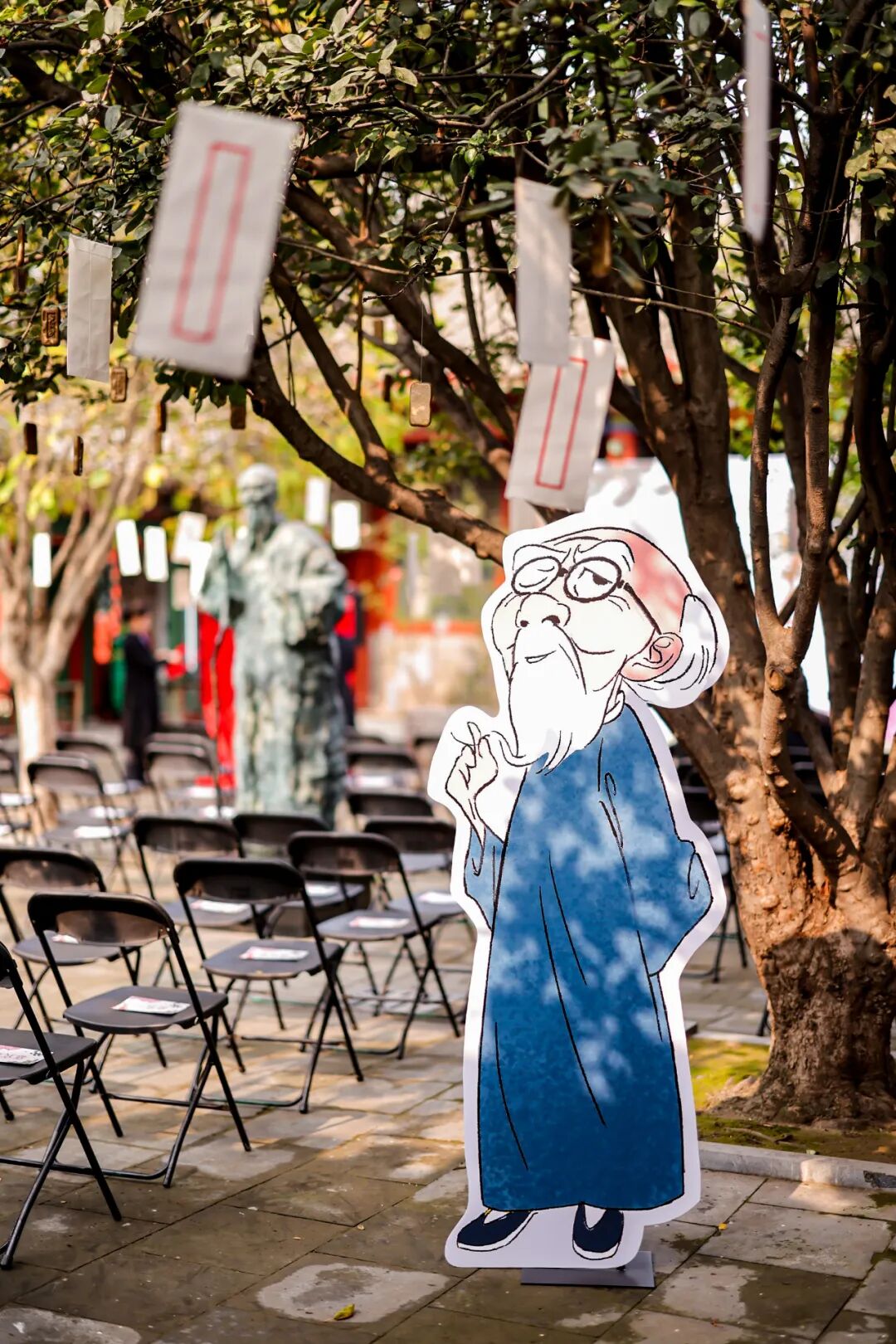 十月廿四日的北京,阳光透过胡同深处的银杏叶,洒进齐白石旧居纪念馆的小院。“白石来信”挂满了海棠树的树梢,在微风中轻轻摇曳。人们在树影斑驳间取阅信笺,聆听一场跨越百年的艺术邀约。院落一角,有人为齐白石画中人塑像,有人装扮成画家笔下的神仙或凡人。小院中茶香氤氲、歌声袅袅。在这样的氛围中,“齐白石在山东”文旅融合创新项目正式启幕。