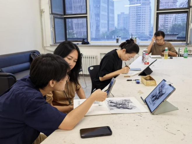 面对学员风格迥异的实际情况,王老师因材施教,根据学员各自的创作主题,对创作稿在课程进行期间不断推进中,边示范边耐心指导。